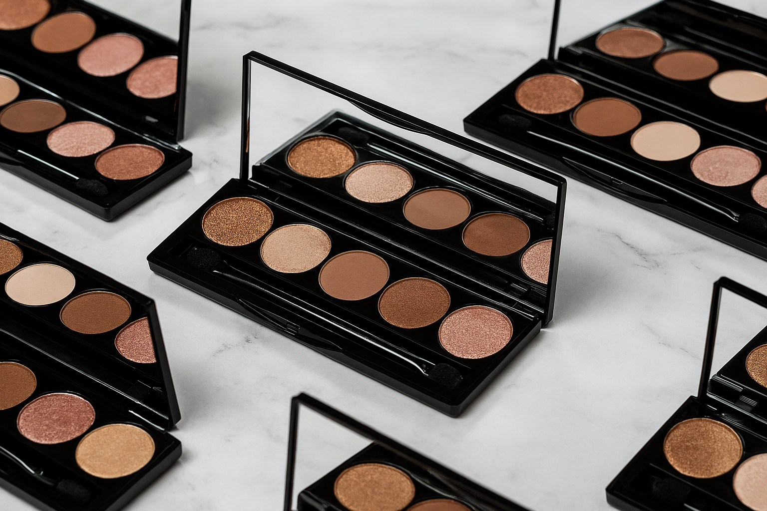 Elevate your eye game with our Eyeshadow Palette. Five expertly curated shades in one sleek palette for endless eye-catching possibilities, from subtle day looks to dazzling night glam.